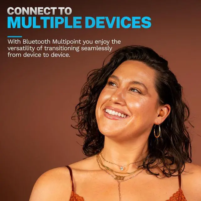 With Bluetooth Multipoint you enjoy the versatility of transitioning seamlessly from device to device. Hop from podcast on your computer to a call on your mobile. You can connect simultaneously to two devices mobile, laptop and/or computer.