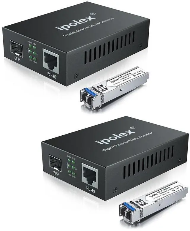 Ipolex Gigabit Single-Mode LC Fiber to Ethernet Media Converter (SFP LX Modules Included), 1.25G Fiber Media Converter, 1000Base-LX to 10/100/1000Base-TX, 1310nm, SMF, Transmission up to 20KM, 2 Pack