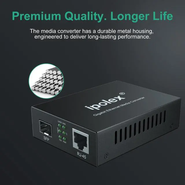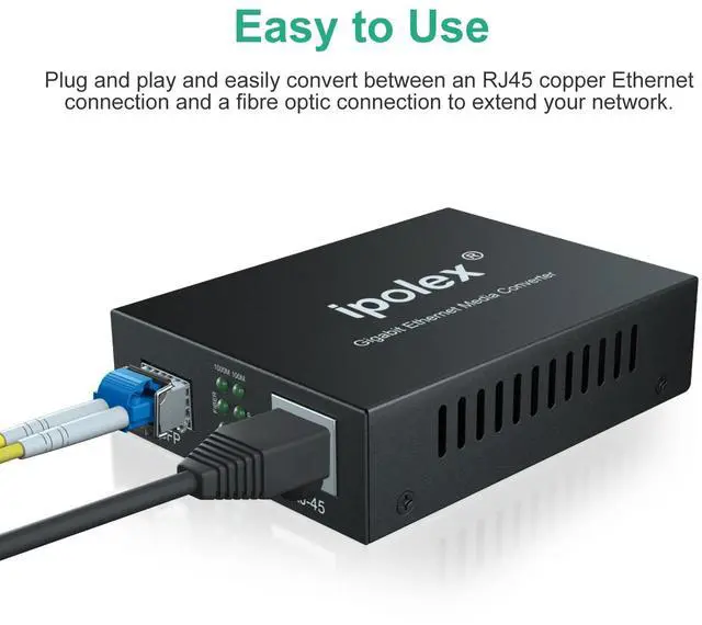 Ipolex Gigabit Single-Mode LC Fiber to Ethernet Media Converter (SFP LX Modules Included),1.25G Fiber Media Converter, 1000Base-LX to 10/100/1000Base-TX, 1310nm, SMF, Transmission up to 20KM, 2 Pack
