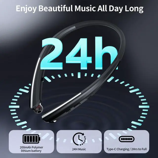 Neckband DesignThis Bluetooth headphones features an ergonomic neckband design that enhances comfort and reduces ear pressure. Perfect for both outdoor activities and office use, it ensures comfort during extended wear.