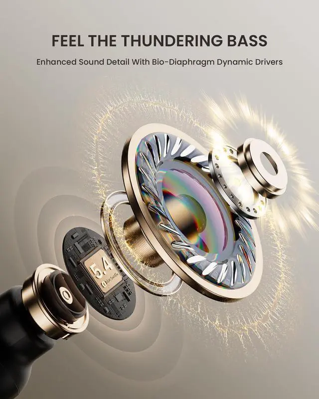 Immersive Sound Qualitywegear wireless earbuds feature Woolen-paper-bio-diaphragm dynamic driver, delivering deep bass and crisp treble for a truly immersive listening experience. The enhanced acoustic design ensures more powerful, penetrating sound than ever before