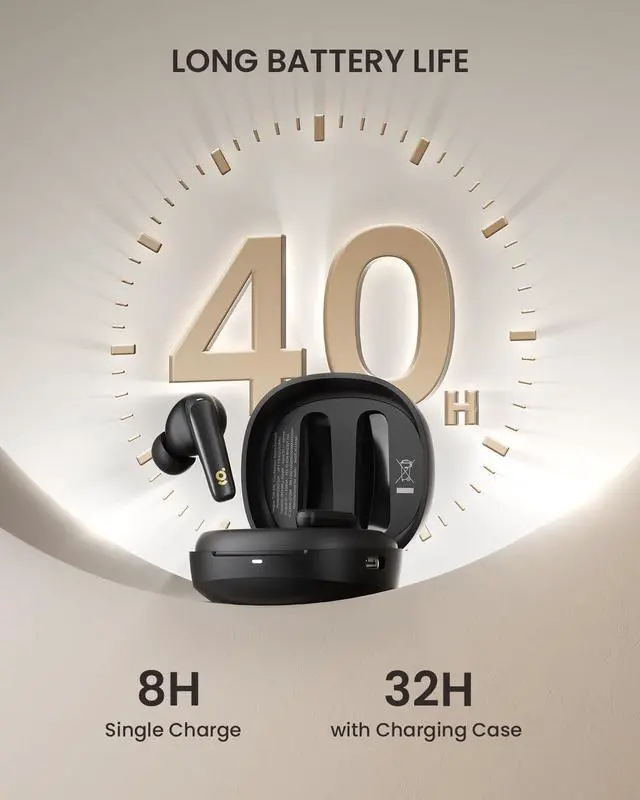 40 Hours of Battery Lifewegear earbuds wireless Bluetooth provide 8 hours of battery life on a single charge and can last up to 40 hours with the charging box. When the Bluetooth earbuds are low on power, it only takes 10 minutes of charging to provide 1 hours of playback, meeting your usage needs at any time
