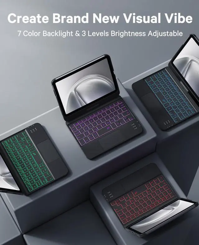 7- Color Backlit: Easily switch between 7 gorgeous colors and 3 brightness with a simple touch. You can adjust the iPad mini 6 keyboard to your favorite color according to your preferences, and easily make your iPad mini case with keyboard more stylish. It is also convenient for keyboard operation under dim light, and it can also bring you a different visual enjoyment and comfortable typing experience with your iPad mini 6.