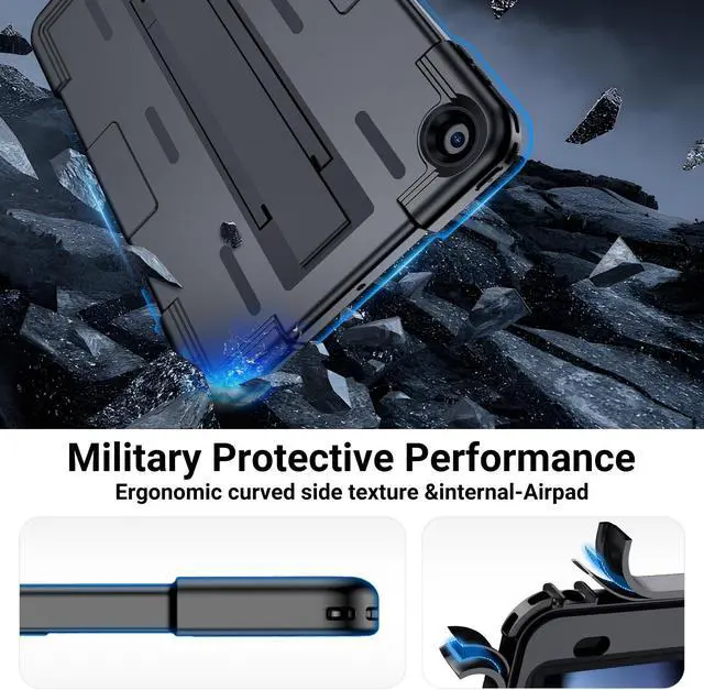 Full body Protection: The hard inner case, with its shock-absorbing silicone case, built-in screen protector and camera protector, covers the entire iPad.Safeguard your iPad 9th Generation from accidental drops or impacts. The rugged construction of this case provides excellent shock absorption, offering peace of mind even in the most demanding environments.
