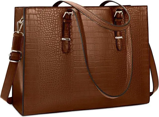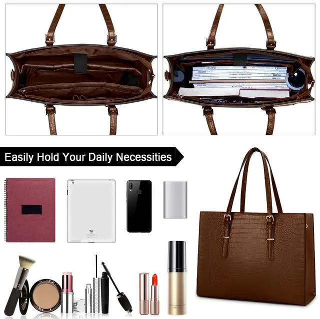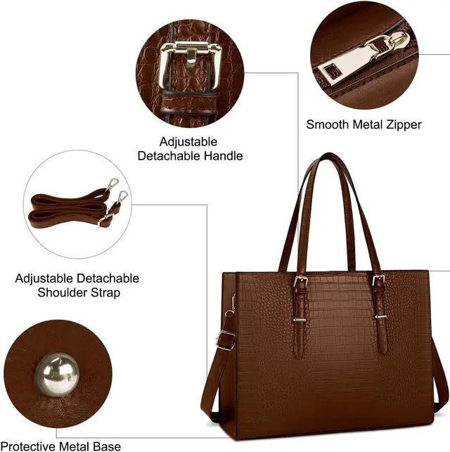 Durable & Classy Women Laptop Bag:Lubardy tote bag made of prime crocodile pattern leather and polyester lining,offers water-repellent scratch-resistant advantage, trimmed with contrasting antique gold-toned hardware that conveys a classic chic fashion look and feel. The on-trend and easy matching colors will bring instantaneous modernity and freshness to any outfit. In addition,metal feet base protects your bag from damage.