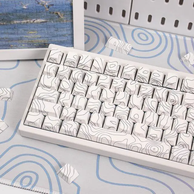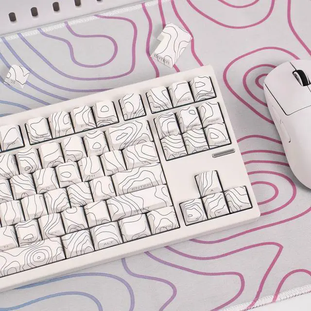 131 Keys White Topographic Keycaps Cherry Profile Side Print PBT Keycaps Set Fit for 61/64/87/104/108 Cherry Mx Switches Mechanical Keyboard