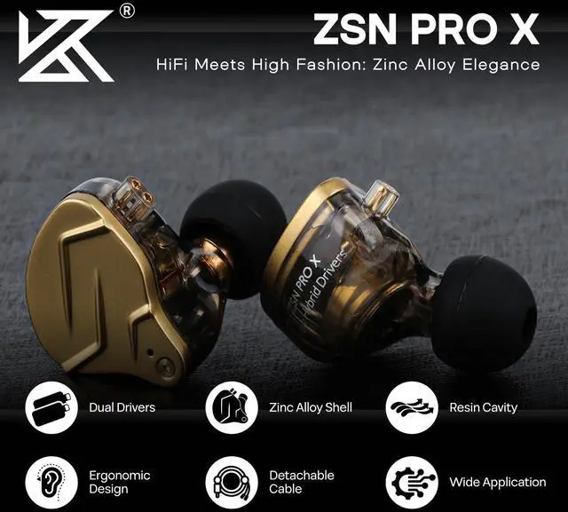 The Upgraded Version-KZ ZSN PRO X. Based on KZ ZSN PRO, we have made some improvements on this model. Equipped with a customized 30095 high frequency balanced armature and a 10mm mid-bass low frequency dynamic driver, tuned by the professional acoustic team, this model fully shows the inherent of rich analytic power of the hybrid technology. The flexible lows and smooth mids plus the bright highs are perfectly combined by scientific adjustments, giving the human voice richer and clearer details
