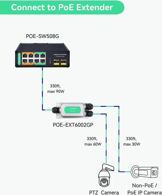 LINOVISION Industrial 8-Port Full Gigabit POE++ Switch and BT90W Outdoor PoE Extender