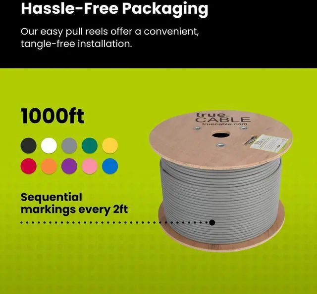 [Easy To Use] Sequential footage marking every 2 ft track remaining cable on the EZ Pull Reel. The internal cable spline fights against kinks and separates wire pairs for cleaner signal and easier termination.
