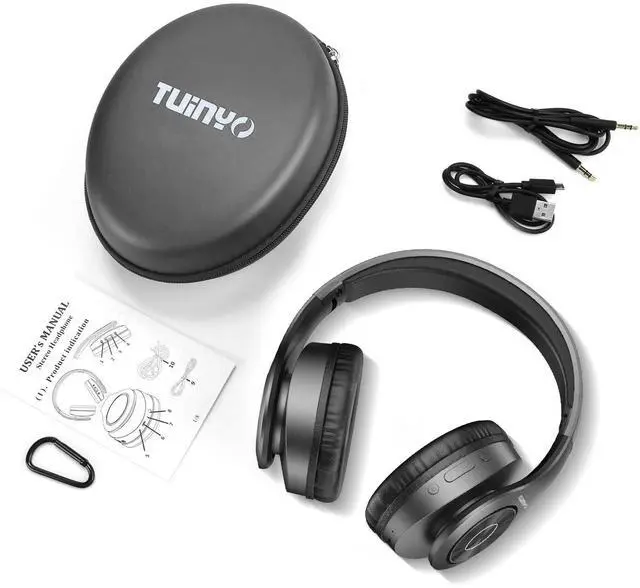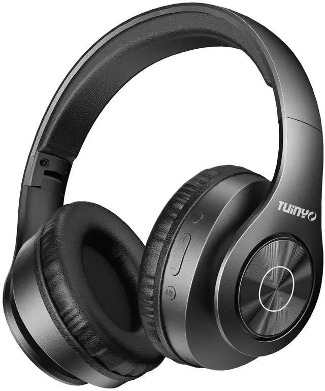 TUINYO Wireless Headphones Over Ear, Bluetooth Headphones with Microphone, Foldable Stereo Wireless Headsetfor Travel Work TV PC Cellphone-Black