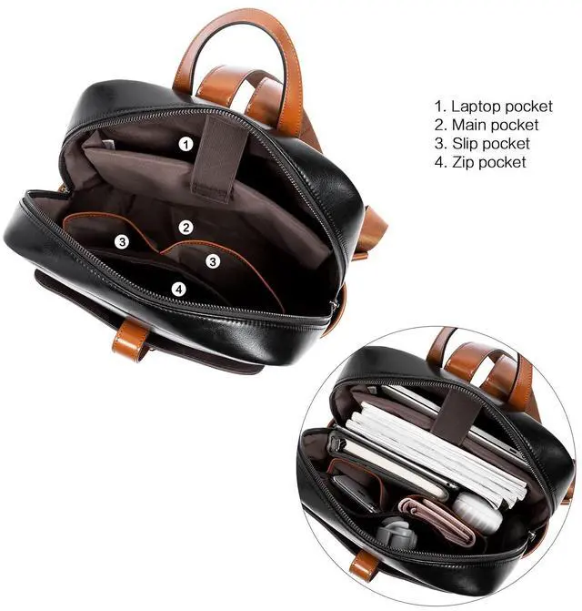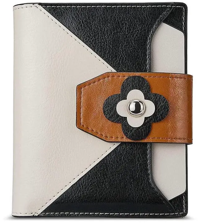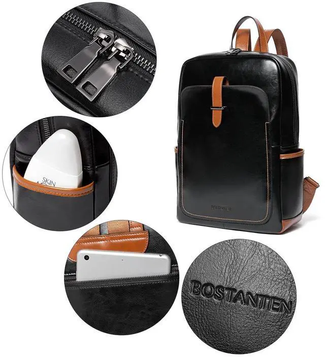 BOSTANTEN Leather Laptop Backpack Purses Casual College Casual Bags Daypack Black and Women Leather Wallet RFID Blocking Small Bifold Zipper Pocket Wallet Card Case Purse with ID Window Floral Pattern