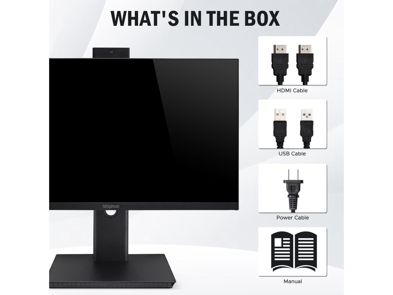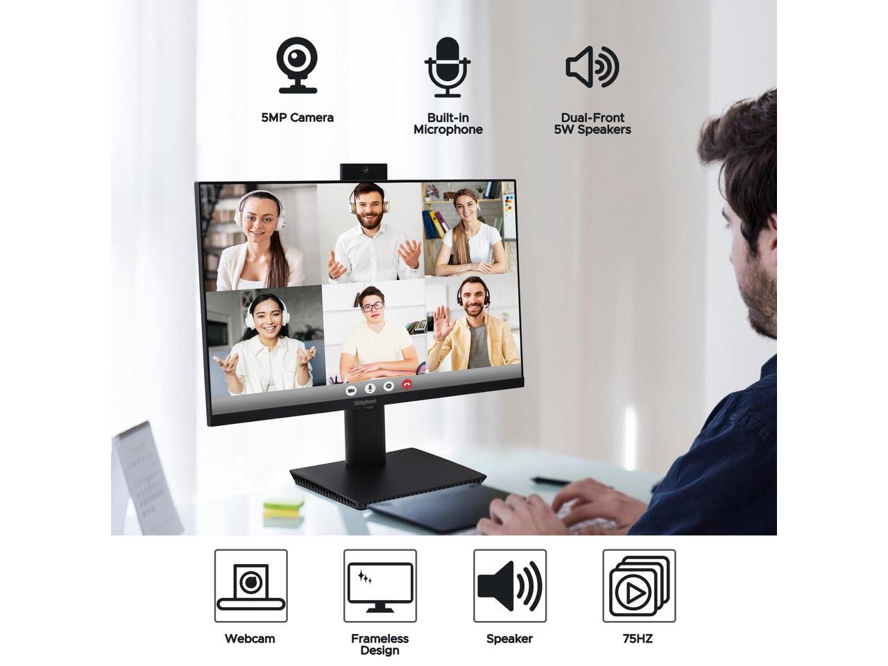 SKitphrati 27'' Business Webcam Monitor, 1080P IPS 75HZ, Video Conference Monitor - Built-in Adjustable 3MP Webcam, Mic Array, Speakers, Eye Care, Frameless, HDMI, DisplayPort, VGA, USB 2.0