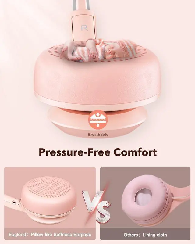 All-Day Comfort for All Head Shape Eaglend always designed for all-day comfort using, there will be no restraint pressure, with the adjustable headbend fit adult and kids easily.The soft protein memory foam earpads is made of high-level breathable materialsROHS certified materials prevent your ears from heat and sweat.