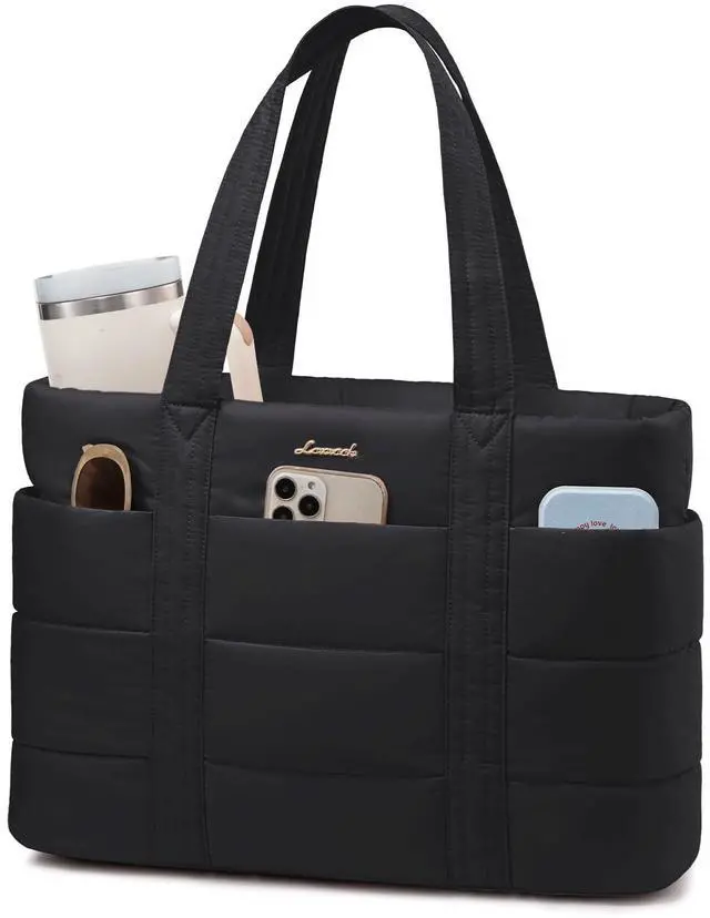 LOVEVOOK Tote Bag for Women, Large Puffer Work Tote Laptop Bag, Lightweight Travel Tote Bag with Zipper Gifts for Women