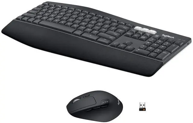Logitech Mk850 performance wireless keyboard and Mouse combo Contoured right-handed mouse with hyper-fast scroll wheel enables you to fly through documents and web pages Type quietly and comfortably for hours at your desk on a full-size keyboard with cushioned palm rest And carefully-crafted keys Both keyboard and Mouse are fully multi-device and multi-os friendly for powering through projects Start typing on your computer, then switch and Type on your tablet, phone or on a second computer Features optical 1000 DPI resolution for silky prominent movement Built-in 8-Buttons and scrolling wheel for fast page navigation and handy control over browsers' Tabs Offers plug and play interface Chrome OS Usb wireless Bluetooth/RF USB wireless Bluetooth/RF Optical - 1000 dpi - 8 button - scroll wheel - AAA, AA - Compatible with desktop computer, smartphone, notebook, tablet (Chrome OS, Windows, Android, Mac, iOS)