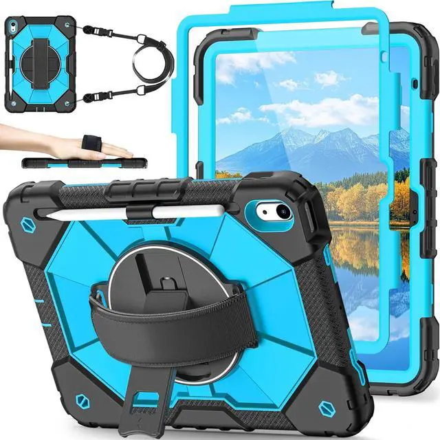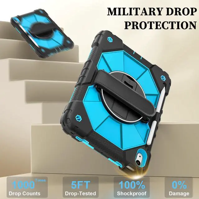 360° ROTATING STAND: iPad case 10th generation 360° Rotating Stand with hand strap is designed for the ipad 10.9 case, providing different angles to meet your requirement, that will be convenient for viewing, typing and drawing, testing in outdoor