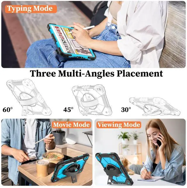 360° ROTATING STAND: iPad case 10th / 11th generation 360° Rotating Stand with hand strap is designed for the ipad 10.9 case, A16 iPad case providing different angles to meet your requirement, that will be convenient