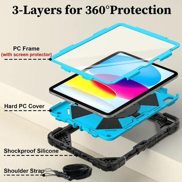 Bulit-in Screen Protector & Anti-Resistant 3 Layers Construction: 3 Layers structure of iPad 10th generation case made of Hard PC and Flexible Silicone, Military Grade Material provides tablet comprehensive protection. 4-5mm convex lip of the lens for Camera Len, Anti-Scratch, Anti-Fingerprint, Shock-Resistant