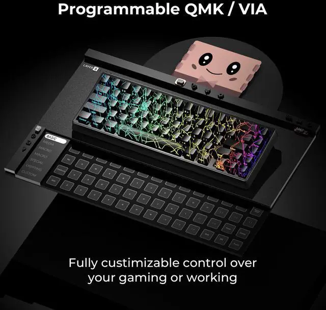 QMK/VIA Custom Gaming KeyboardYou can easily program and remap each key you want on any system (macOS, Windows, or Linux). The open-source firmware means endless possibi