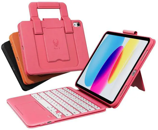 PAUL B for iPad 11th/10th Gen Case with Keyboard 11/ 10.9 inch A16 2025/2022, Handbag Design Wireless Keyboard Cover for iPad 11/10 Gen, with Pencil Holder, Multi-Touch Trackpad (Pink)