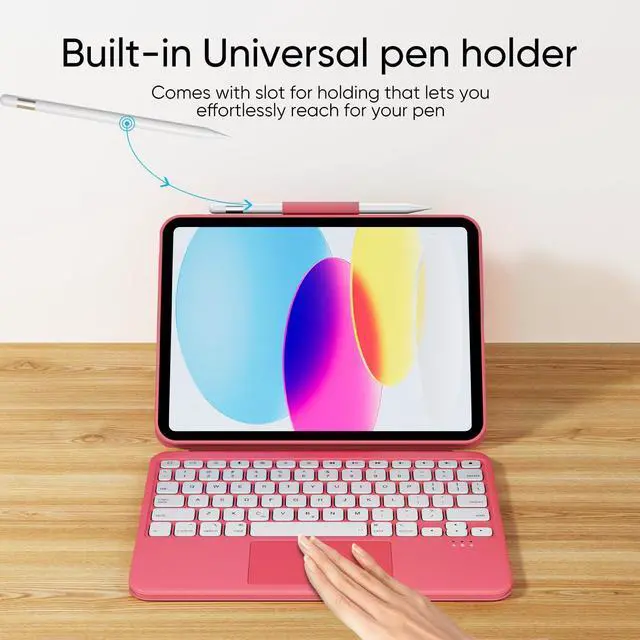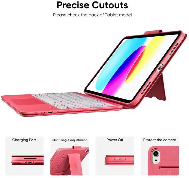 Precision Trackpad for Quick NavigationThis iPad cover with keyboard Built-in high-precision trackpad supports multi-touch gestures such as tap, swipe, scroll, and app switching. Whether youre browsing the web or editing documents, it boosts your productivity across various work scenarios.