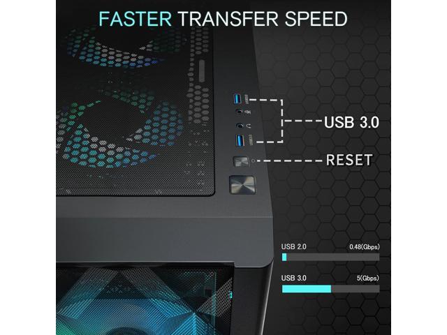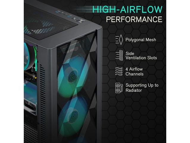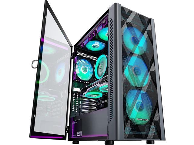 MUSETEX ATX PC Case Pre-Install 6 PWM ARGB Fans, Polygonal Mesh Computer Gaming Case, Opening Tempered Glass Side Panel Mid-Tower Case, USB 3.0 x 2, Black, NN8