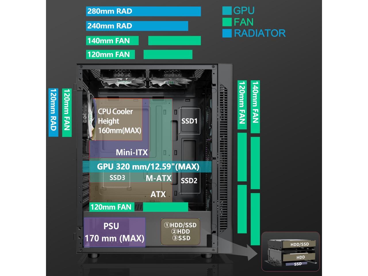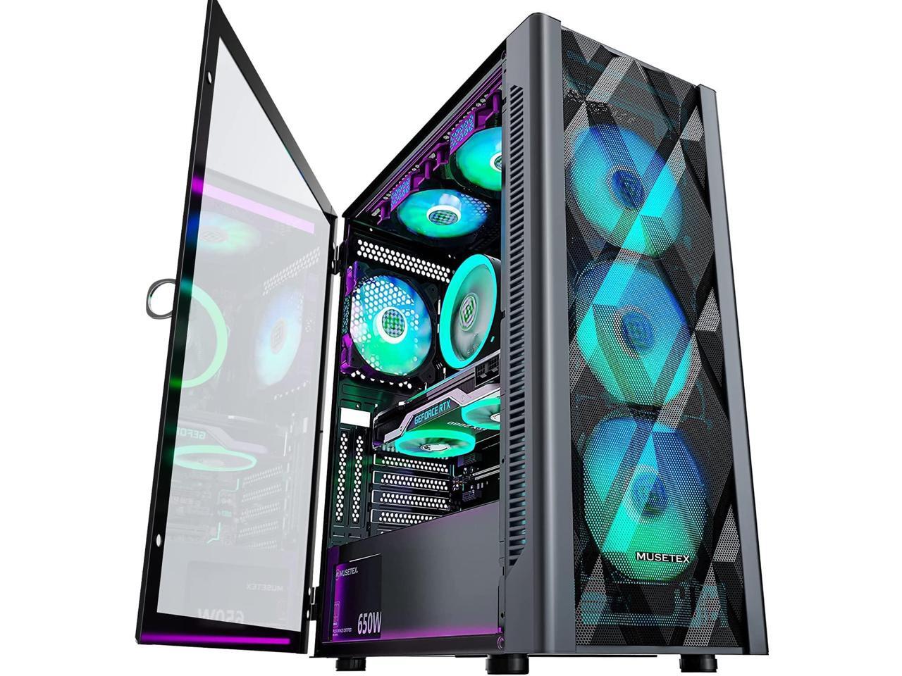 - After view MUSETEX item description,you will be pleasantly surprised by our configuration.Reasons:Has 6 auto-adjustable speed PWM ARGB fans;Computer cases Bestselers top10 are all old designs,none of which are as popular as our cases that have side opening door.No need to remove screws,can super easily open inner case to clean radiator and graphics card dust,also easy to put in different dolls.Friends will think your case is cool!