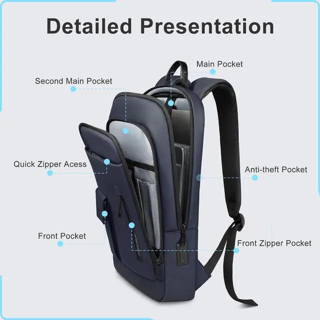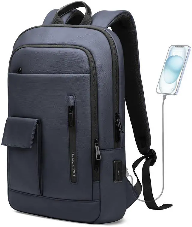Original Design by the brand Heroic KnightThe Slim Laptop Backpack is a new backpack for men and women. This laptop backpacks has various practical compartments and pockets: main pocket*1, front pocket*1, padded sleeve for laptop *2, mesh pocket *4, normal pocket*3, zipper pocket*3, pocket for pen*3, card pocket*1. You can store your essentials in the different pockets to ensure your belongings are organized and easier to find.(The backpack features dedicated laptop and ipad compartment)