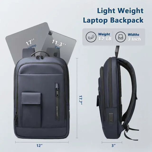 Slim & Lightweight & Large CapacityThe ultralight laptop backpacks are made of lightweight materials, Size:17.7 * 12 * 3 Inches, only 1.7 LB, Volumen: 10 L. The simple backpack reducing overall weight and making long-term carrying more comfortable. This computer backpack is flexible and versatile, suitable for college, short travel, work, commuting, business trips, and outdoor activities such as hiking and cycling.