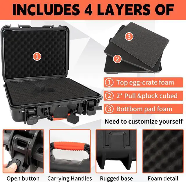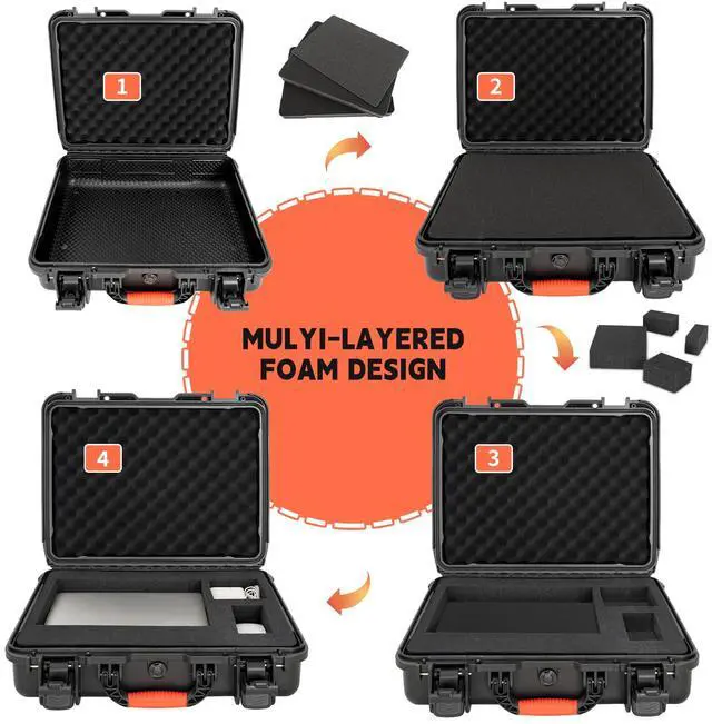 Waterproof IP67WELIDAY hard shell laptop case has IP67 waterproof rating, which can prevent the ingress of water vapor, dust, etc. to protect your electronic devices in extreme environments. Manual pressure relief valve to balance the air pressure, preventing vacuum lock at high altitude or pressure changes