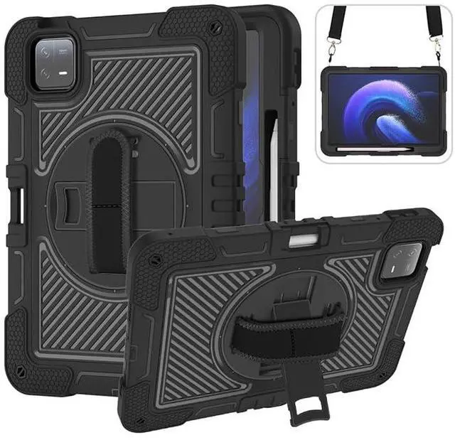 YOUULAR Tablet Case for Xiaomi Pad 6 Pro/Xiaomi Pad 6 23043RP34C, 23043RP34G 11.0 inch, Tablet Shockproof Cover with 360° Rotating Stand and Wrist Strap, Shoulder Strap Completely Black