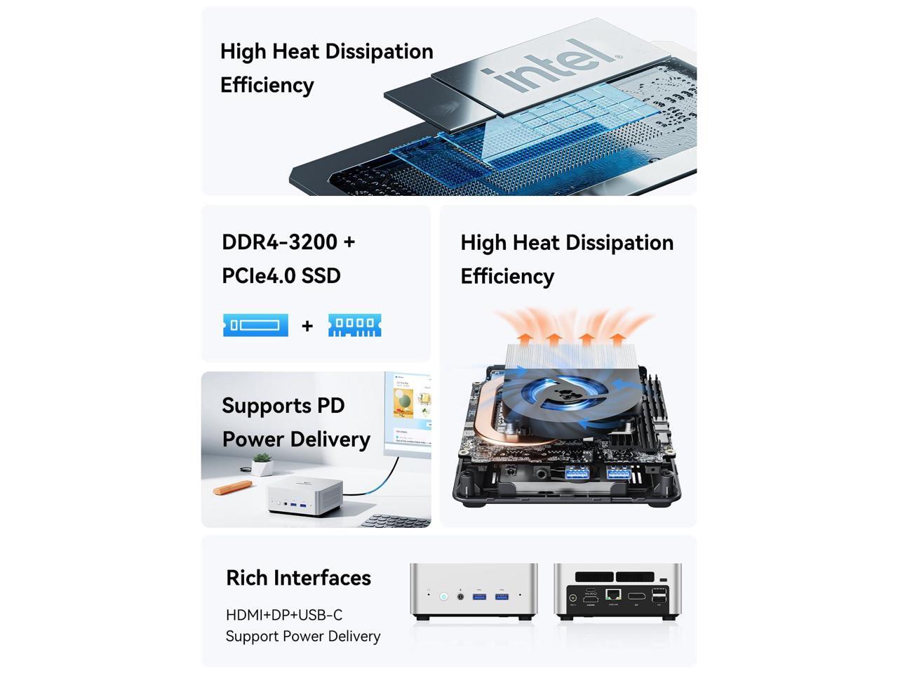 - Ample StorageThe UN1290 Micro Computer features pre-installed 32GB DDR4 (expandable up to 64GB via SODIMM*2) and a 1TB M.2 2280 PCIe 4.0 SSD (expandable up to 2TB), ensuring ultra-fast read/write speeds for quicker OS and game performance. Addition