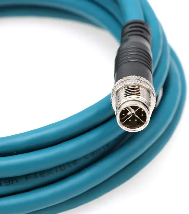 This M12 8 Pole X-Code Male to RJ45 Cat6a Ethernet Shielded Cable is usde for Industrial Machinery, Ethernet, network applications, Matrix Vision, Triton camera models, GigE Vision ,basler AVT Sony Cognex CCD cameras.