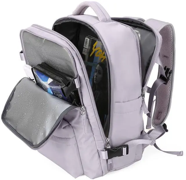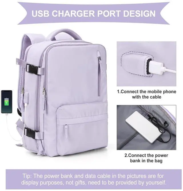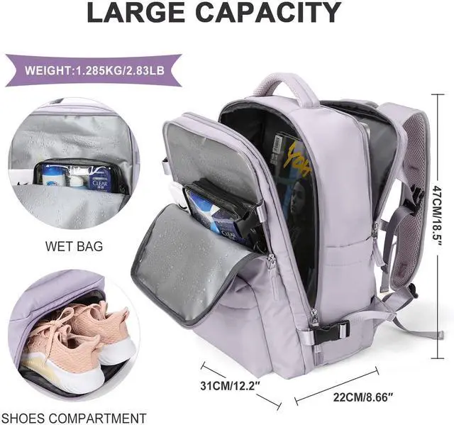 Large Travel Backpack Women, Carry On Backpack, Hiking Backpack Waterproof Outdoor Sports Rucksack Casual Daypack with USB Charging Port Shoes Compartment, Purple