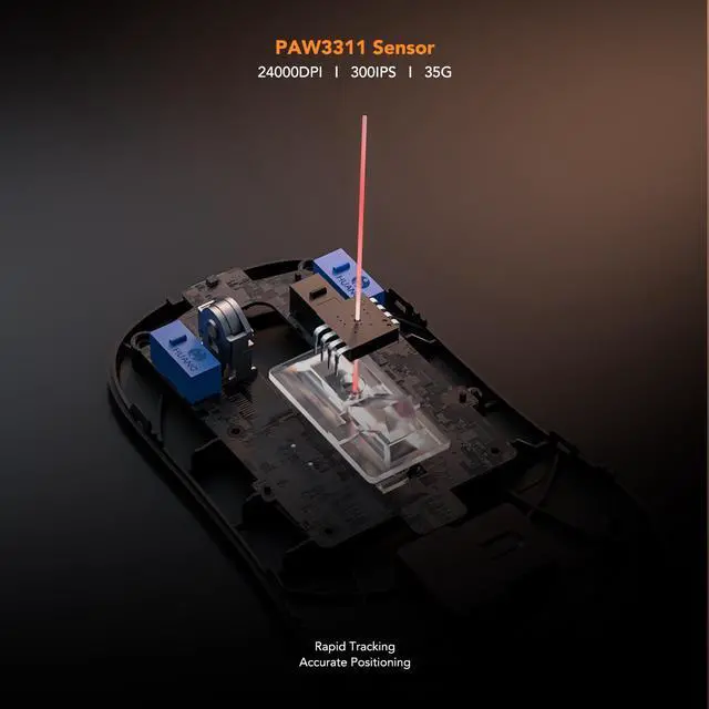 Precise Response: Paw 3311 sensor with a 1000Hz polling rate, every click is registered instantly. Enjoy ultra-responsive tracking and pinpoint accuracy, giving you the edge in high-intensity FPS and action games
