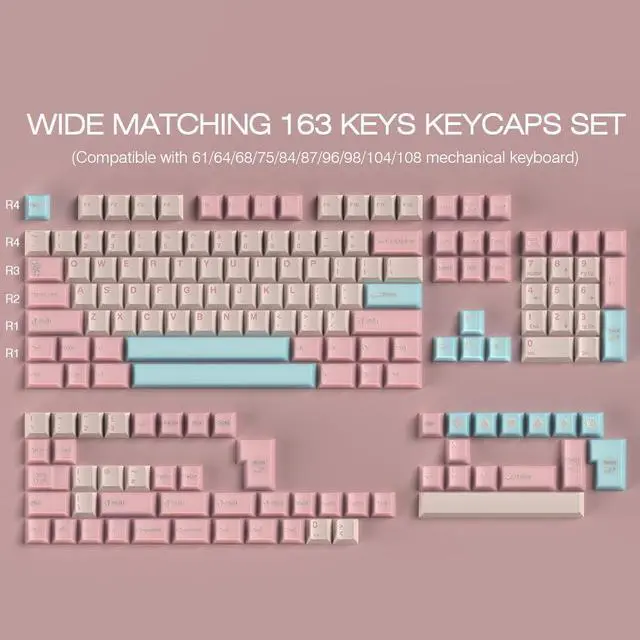 Keycap Set:This keycap set includes 163 keys with a 6.25u spacebar and 1 keycap puller, fit most 60%/65%/75%/80%/96%/100% (61/64/68/75/84/87/96/104/108) US layout mechanical keyboard