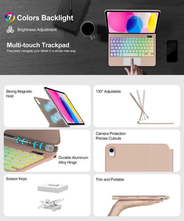 UPGRADED MULTI-TOUCH TRACKPAD: Transform your tablet into a powerful productivity tool with ipad magic keyboard for 10.9inch 10th gen. The new upgraded glass trackpad for iPad 11th generation case keyboard is more sensitive and smoother. Just fingertips to accurately c