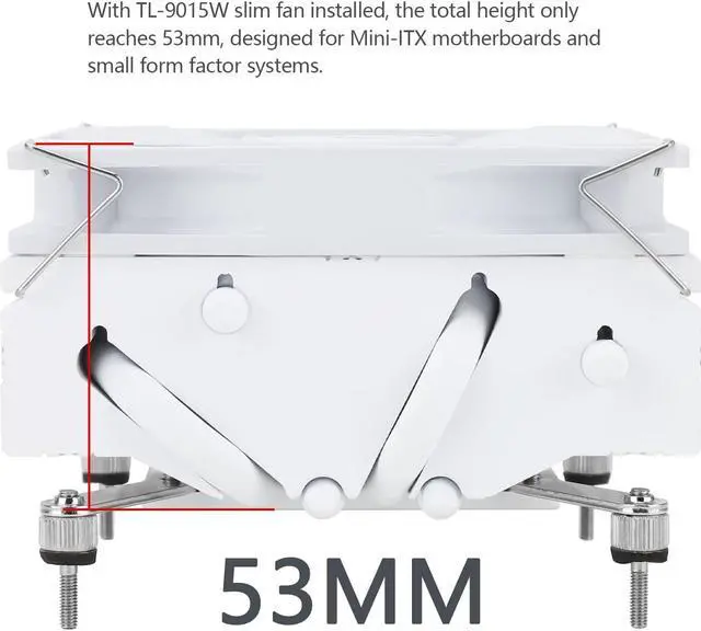 53mm HeightThe AXP90 X53 white low profile cooler, combined with a 92mm PWM fan for automatic temperature control and ultra-quiet operation, and a total cooler height of just 53mm, makes it ideal for HTPC, ITX and small models with a small CPU cooler without any memory limitation worries.