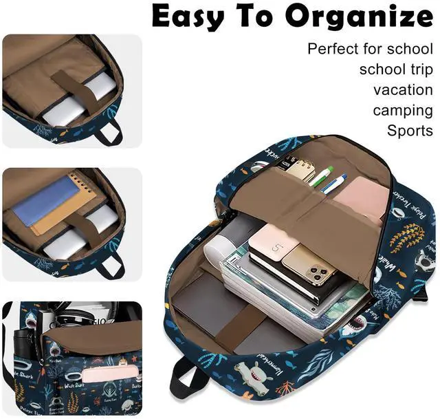 ROVOZAR Funny Shark Faces School Backpack for Boys Girls, Shark Backpack for School Kids Bookbag, 16 Inch Ocean Animals Theme Laptop Back Pack for Travel Hiking Camping