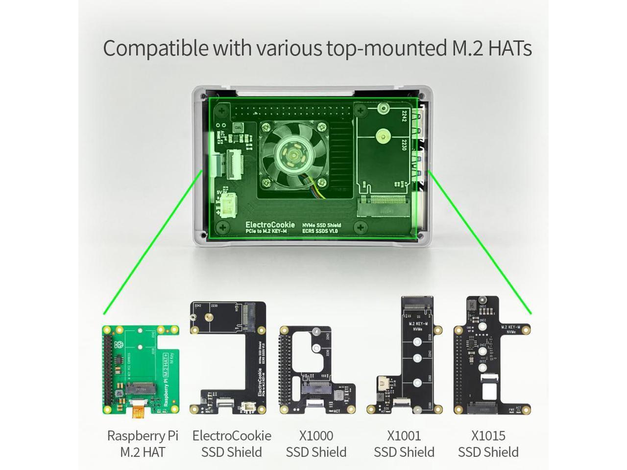 - Optimized for Top-Mounted M.2 HAT Boards : Designed to support various M.2 HAT boards mounted above the Raspberry Pi 5 (*Note: Installation underneath is not supported due to the internal layout).