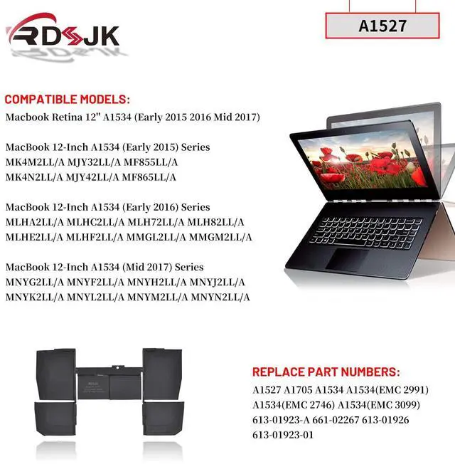 A1527 A1705 A1534 A1534 (EMC 2991) A1534 (EMC 2746) A1534 (EMC 3099) 613-01923-A 661-02267 613-01926 613-01923-01