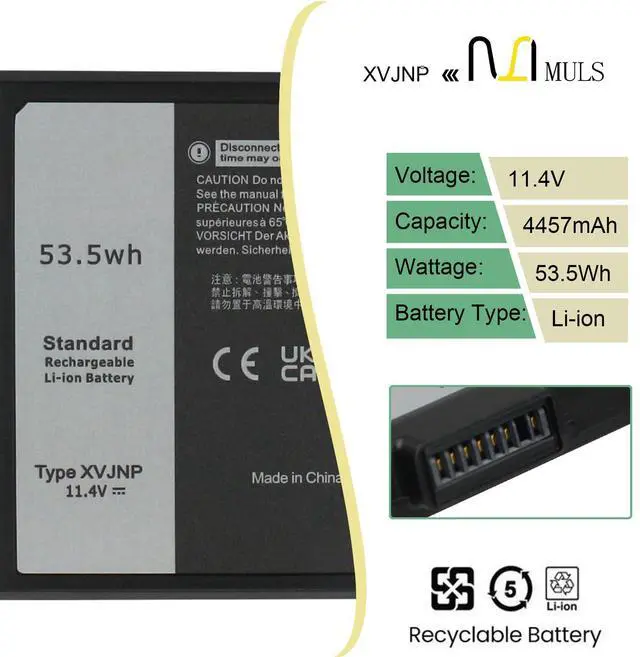 XVJNP 6JRCP Battery Replacement for Dell Latitude 5430 7330 Rugged Extreme P148G P148G001 P149G P149G001 Series Laptop 06JRCP M0TN3 KD1CT 451-BCWQ 0M0TN3 11.4V 53.5W h 4457mAh
