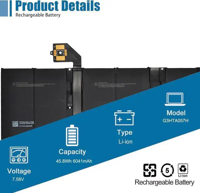VANPIR G3HTA052H Laptop Battery Replacement for Microsoft Surface Laptop 3 Gen 13.5" Keyboard Base 1867 1868 15 Core i5-1035G7 Series G3HTA053H 7.58V 45.8W h 6041mAh