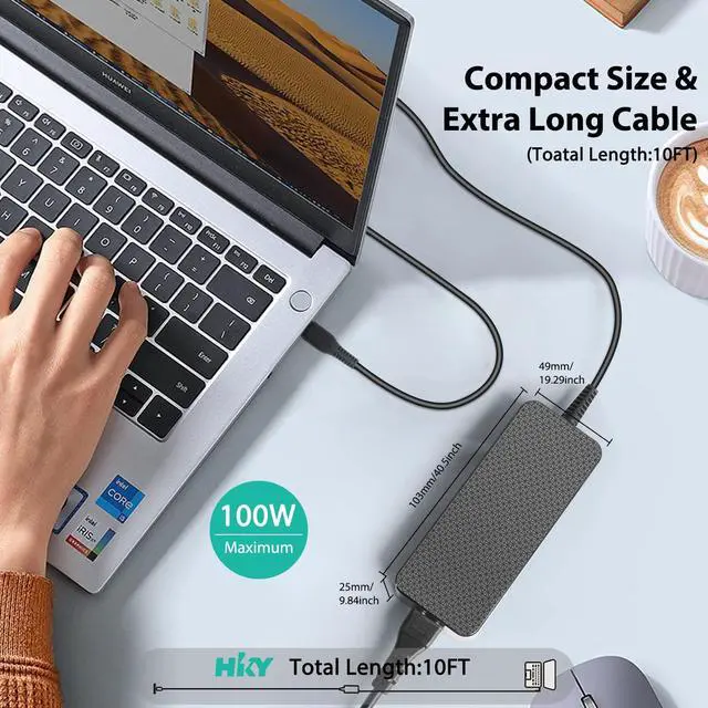 HKY PD 100W USB C Charger for MacBook Pro/Air, Surface, 95W 90W Dell XPS/Latitude/Precision, HP, MSI, Asus, LG, Razer Blade Stealth, Lenovo Yoga/Thinkpad/ThinkBook/Legion Laptop Chromebook USB C Power Adapter