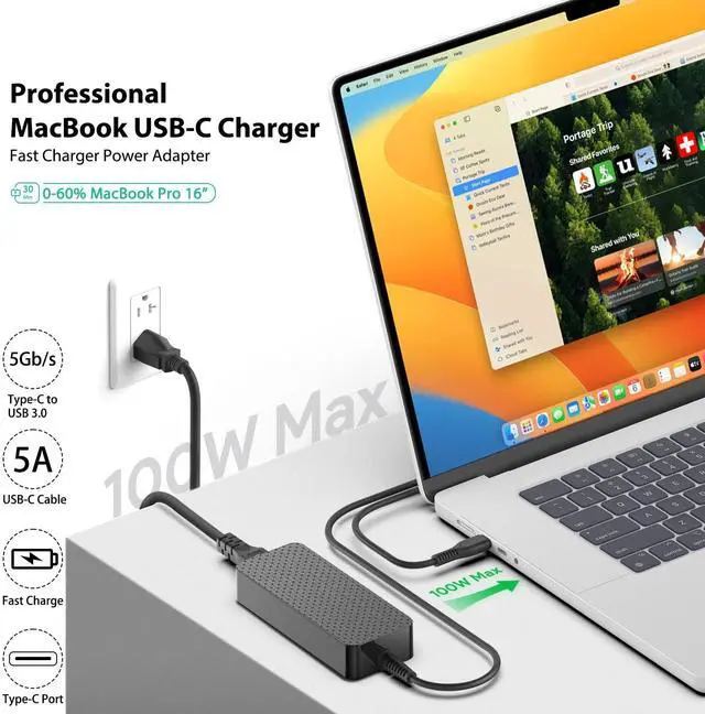 Amazon's ChoiceMacBook Pro 16,15,14,13 inch,MacBook Air 13 inch 2023/2022/2021/2020/2019/2018,Macbook Air M2 / Pro M2 2022, iPad Pro 12.9,11 inch 2020/2018 and iPad Air 10.9 inch(2020) /Surface Book 3 /Book 2 15" 13.5"/Surface Pro 9 /Pro 8 /Pro X / Pro 7 /Surface Laptop 3 /Laptop 4 /Laptop 5 higher charging performance than 96W,87W,61W,30W USB C charger while charging for MacBoook Pro 16/14/15/13/12 inch, New Air 13 inch;Fit for Dell Latitude 9520 9420 7520 7420 5520 5420 5320 5430 5530 7330 7430 7530 9430;Msi Prestige 15 14 A10 A11 Series /MSI Summit E15 E16 E14 laptop;Asus A20-100P1A Asus rog /ASUS ROG Flow X13 Z13 gv301 gz301 /ZenBook 14X 14 ux425qa um425qa ADP-100XB B