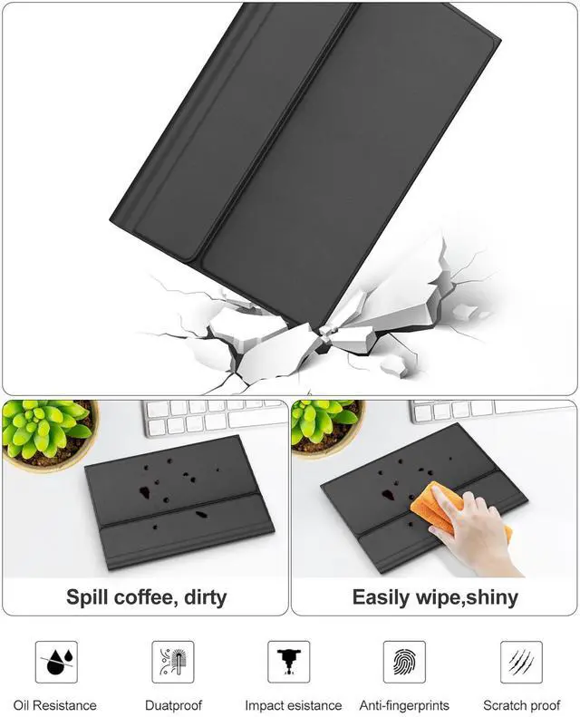 360 Protection for TabletFor samsung tablet keyboard case features a sturdy high-quality PU shell and soft anti slip rubber lining inside, providing comprehensive protection for your tablet.