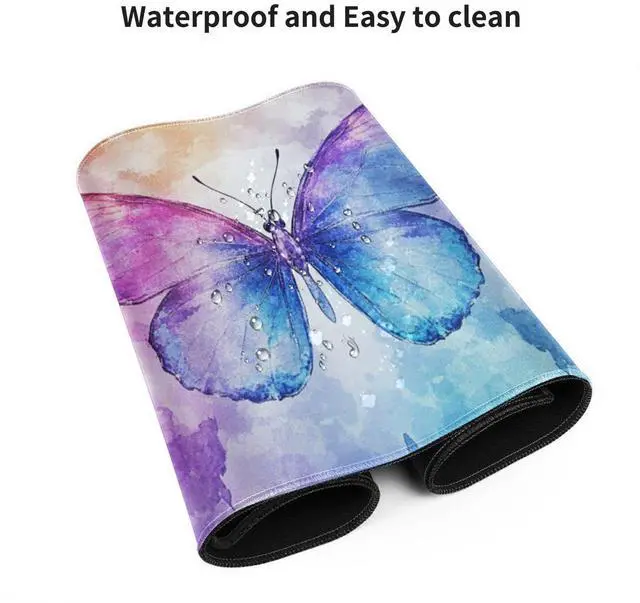 ZOCOZY Extra Large Butterfly Mouse Pad 48x24 Inch 3XL Huge Waterproof Desk Mat with Non-Slip Rubber Base & Stitched Edges, Full Coverage Mousepad Keyboard Mat for Work, Game, Office(Purple, XXXXL)