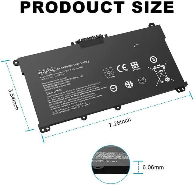 • Specifications:Battery Model: HT03XL Battery .Type: Li-ion. Voltage: 11.55V. Capacity: 41.9Wh/3630mAh. Cells: 3-cell. Battery Type: Li-ion. 100% New from Manufacturer.