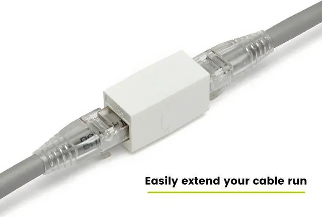 EASY TO USE. Our 180° RJ45 to RJ45 feed through inline couplers are designed for on the go convenience. The reusable inline design makes it easy to disconnect and relocate as needed. Ideal for non permanent installations.