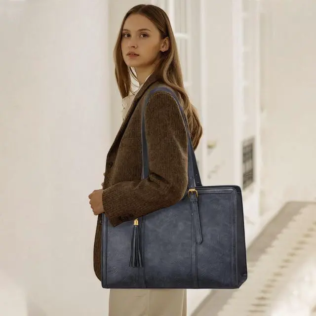 Elegant Laptop Tote Bag & Stand Upright This laptop bag for women combines vintage charm with modern fashion, making it a classic accessory that never goes out of style. Its metal feet ensure that the work bag stands upright and maintains its shape, adding to its overall sophisticated look.